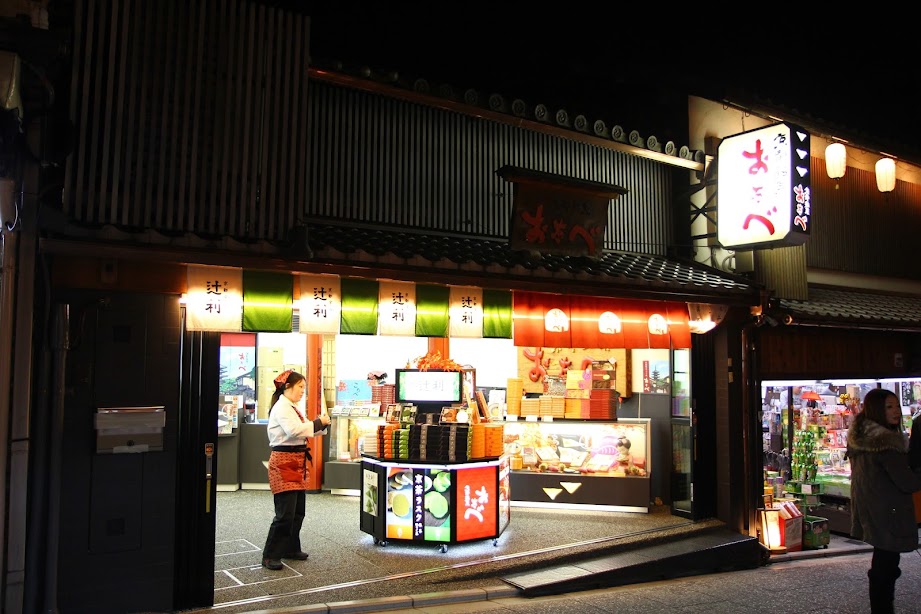 許多店家也配合秋天的特別開放時間,營業到很晚(九點半),因此在前往清水寺的路上.........咱們又禁不住誘惑,沿途吃吃喝喝啦!